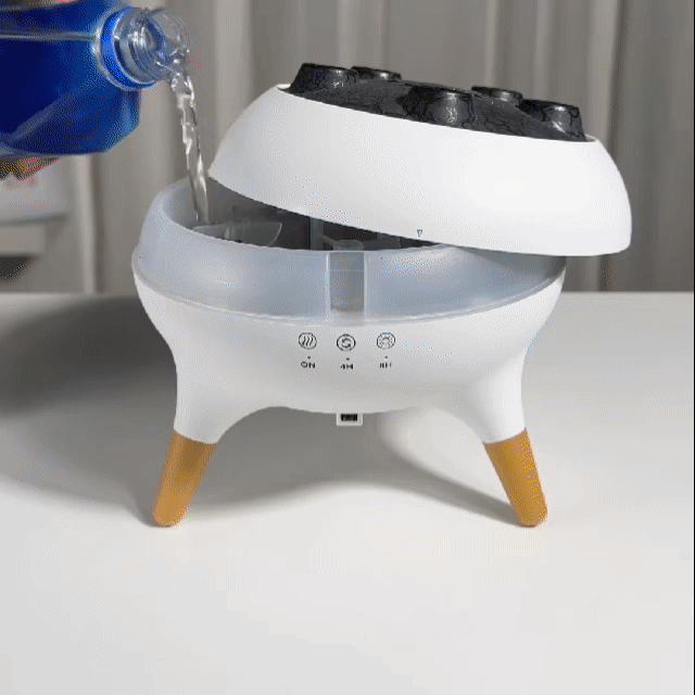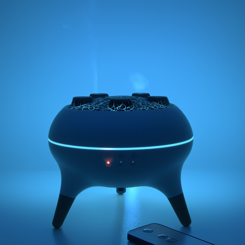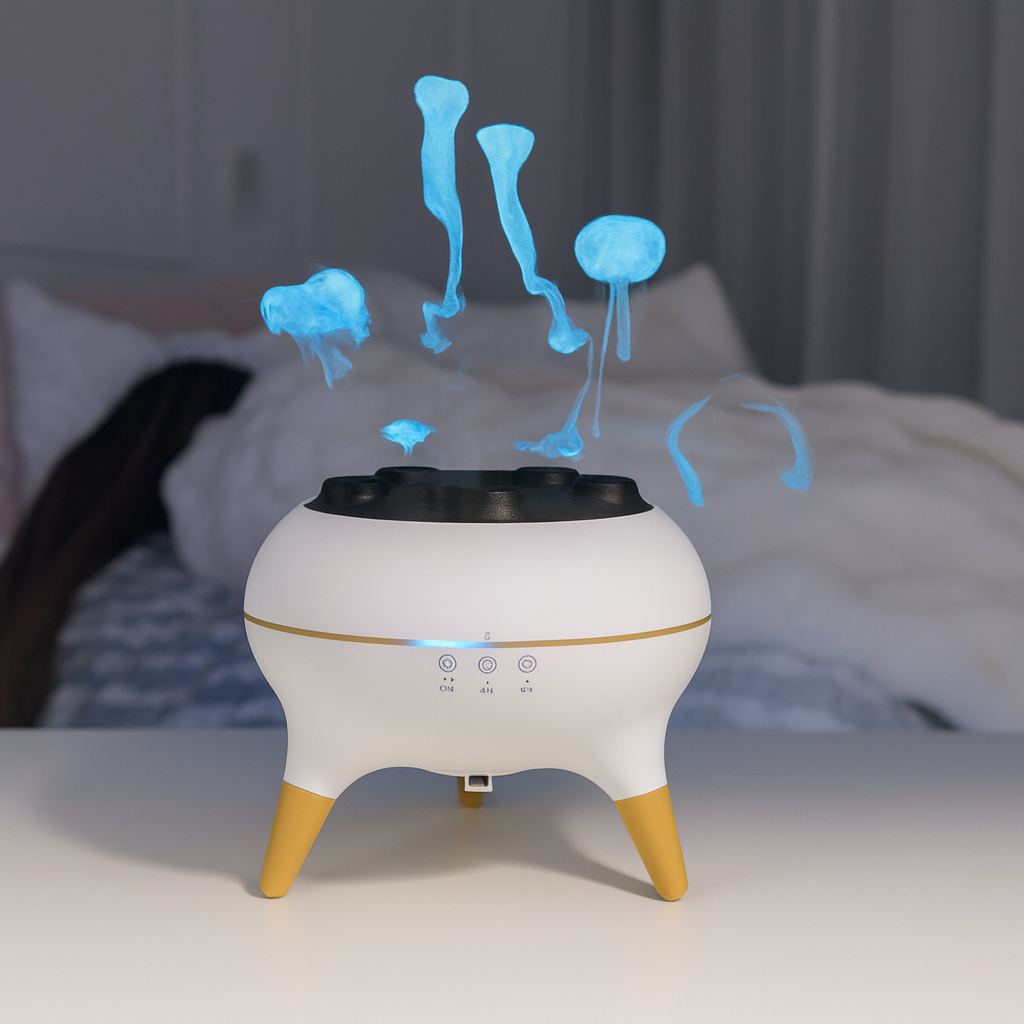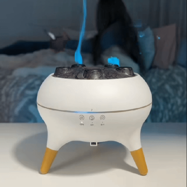 Creates a calm mood with mist and soft lights — great for sleep or stress relief.