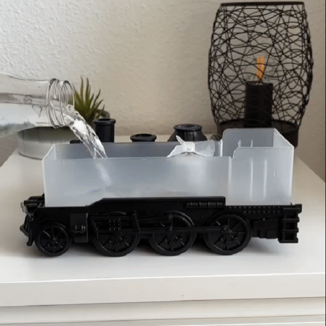 This humidifier uses ultrasonic technology to turn water into a fine mist, which is released through the train’s chimney, helping to increase humidity in the room.